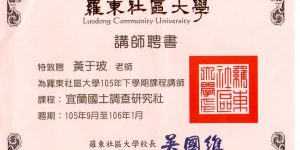 本公司黃于玻總經理被羅東社區大學聘為國土調查課程講師